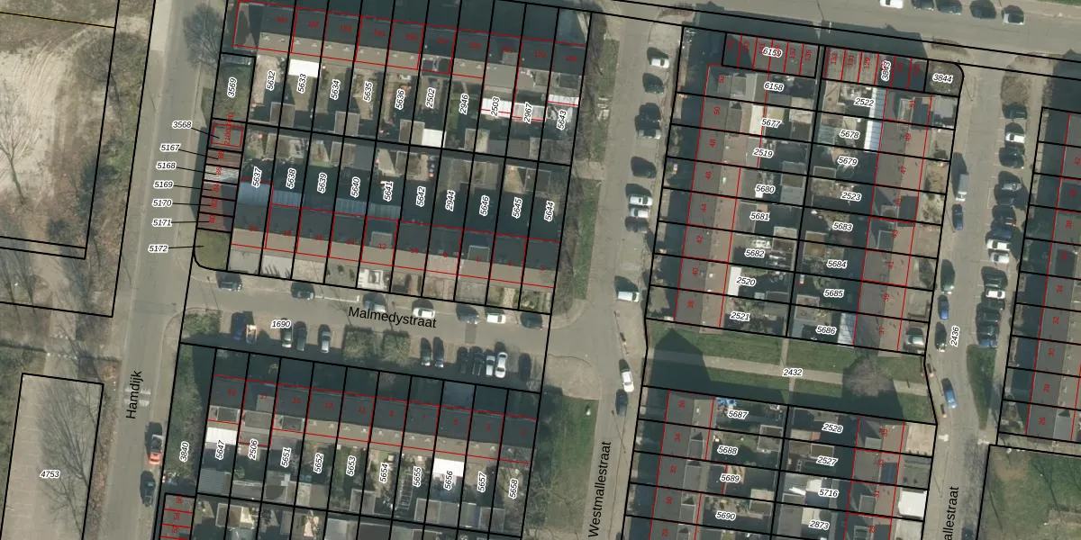 Malmedystraat 2 is gelegen op kadastraal perceel BDA00G5644. Deze kadastrale aanduiding is uniek en wordt gebruikt door het Kadaster om eigendomsrechten en andere zakelijke rechten vast te leggen. Het perceel maakt onderdeel uit van de kadastrale gemeente Breda.