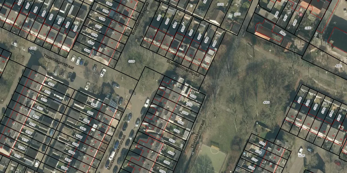 Het perceel waarop Mandenmakerstraat 1 staat heeft een oppervlakte van 156 m². Dit is een middelgroot perceel. De perceeloppervlakte wordt geregistreerd door het Kadaster. Gedetailleerde informatie over de maten van dit perceel kunt u vinden in het rapport Kadastrale kaart met maatvoering van Mandenmakerstraat 1.
