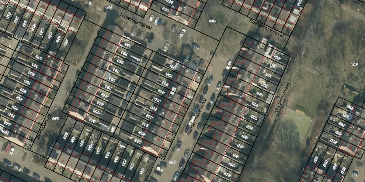 Het perceel waarop Mandenmakerstraat 6 staat heeft een oppervlakte van 158 m². Dit is een middelgroot perceel. De perceeloppervlakte wordt geregistreerd door het Kadaster. Gedetailleerde informatie over de maten van dit perceel kunt u vinden in het rapport Kadastrale kaart met maatvoering van Mandenmakerstraat 6.
