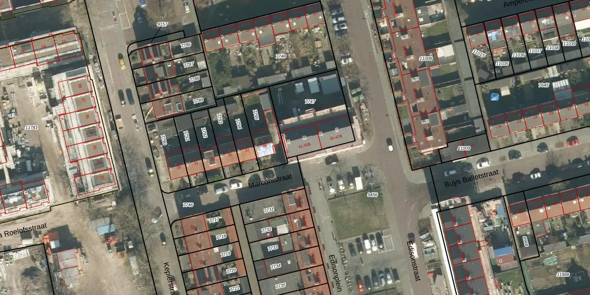 Marconistraat 41 is gelegen op kadastraal perceel BDA00D7747. Deze kadastrale aanduiding is uniek en wordt gebruikt door het Kadaster om eigendomsrechten en andere zakelijke rechten vast te leggen. Het perceel maakt onderdeel uit van de kadastrale gemeente Breda.