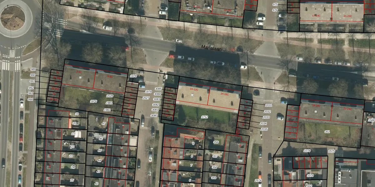 Het perceel waarop Marialaan 10-B staat heeft een oppervlakte van 900 m². Dit is een groot perceel. De perceeloppervlakte wordt geregistreerd door het Kadaster. Gedetailleerde informatie over de maten van dit perceel kunt u vinden in het rapport Kadastrale kaart met maatvoering van Marialaan 10-B.
