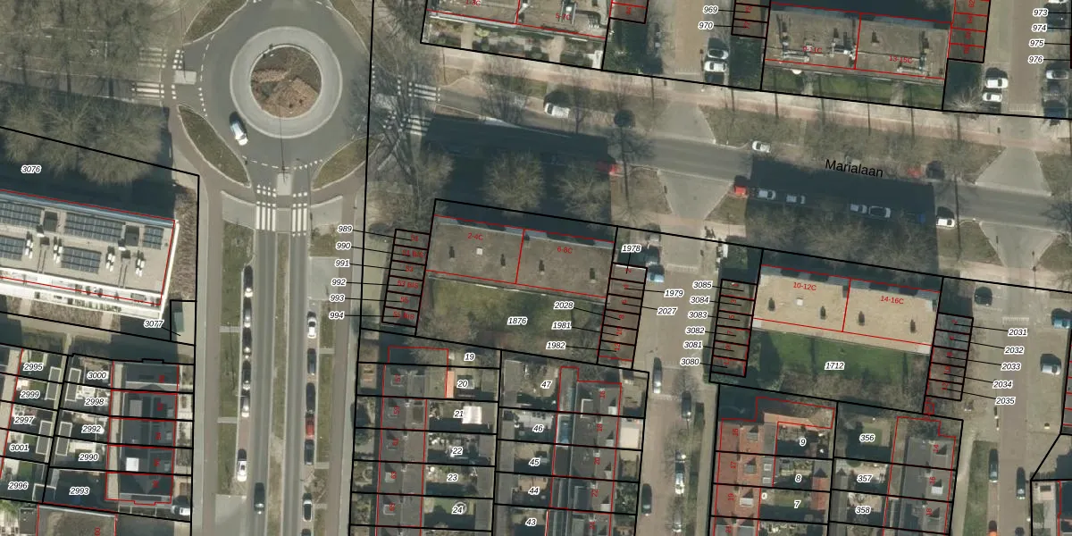 Het perceel waarop Marialaan 6-C staat heeft een oppervlakte van 889 m². Dit is een groot perceel. De perceeloppervlakte wordt geregistreerd door het Kadaster. Gedetailleerde informatie over de maten van dit perceel kunt u vinden in het rapport Kadastrale kaart met maatvoering van Marialaan 6-C.