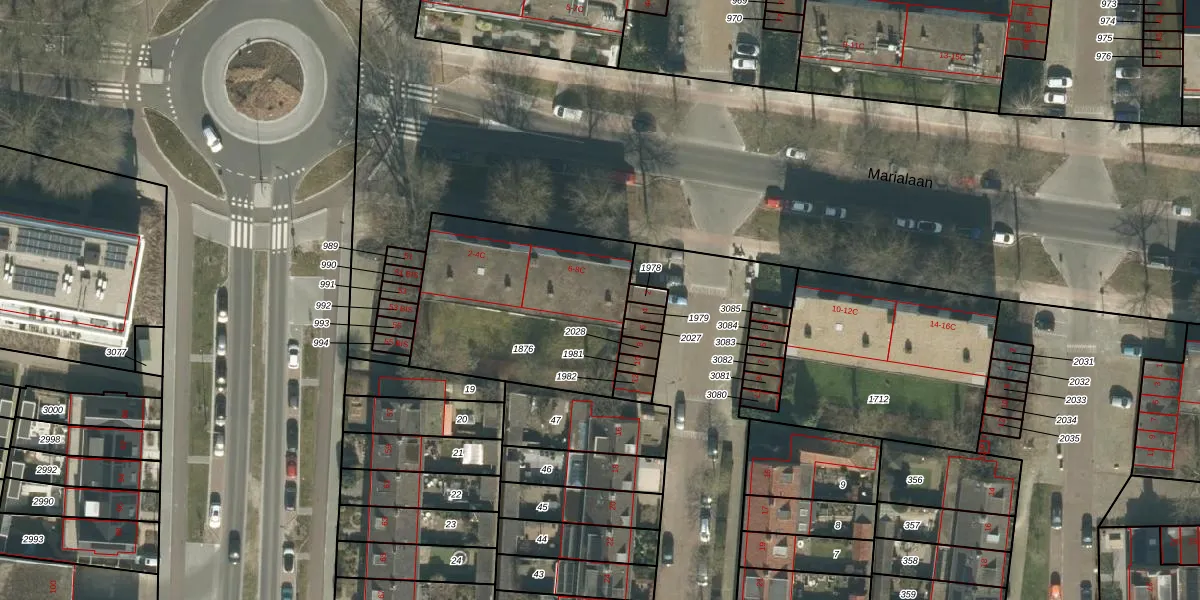 Het perceel waarop Marialaan 8-C staat heeft een oppervlakte van 889 m². Dit is een groot perceel. De perceeloppervlakte wordt geregistreerd door het Kadaster. Gedetailleerde informatie over de maten van dit perceel kunt u vinden in het rapport Kadastrale kaart met maatvoering van Marialaan 8-C.