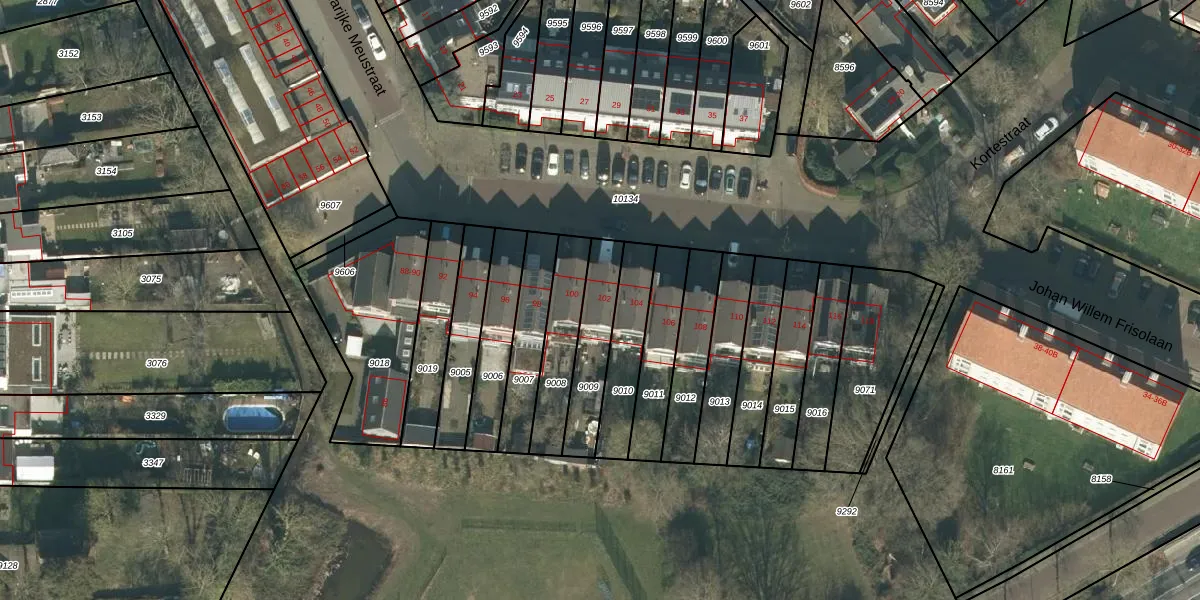 Marijke Meustraat 102 is gelegen op kadastraal perceel BDA00D9009. Deze kadastrale aanduiding is uniek en wordt gebruikt door het Kadaster om eigendomsrechten en andere zakelijke rechten vast te leggen. Het perceel maakt onderdeel uit van de kadastrale gemeente Breda.