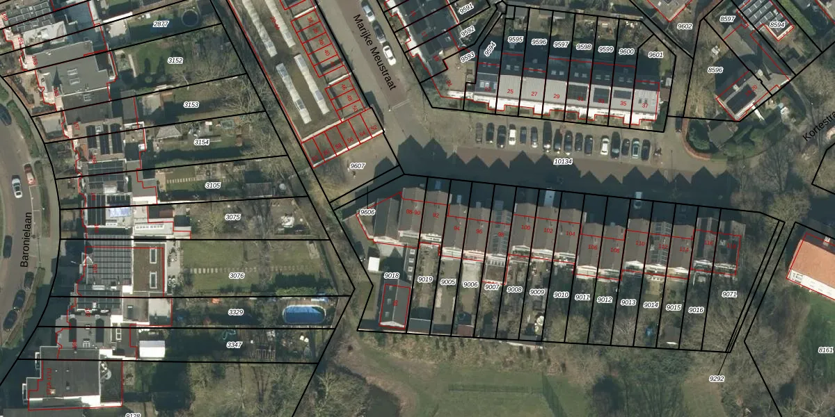 Het perceel waarop Marijke Meustraat 90 staat heeft een oppervlakte van 534 m². Dit is een groot perceel. De perceeloppervlakte wordt geregistreerd door het Kadaster. Gedetailleerde informatie over de maten van dit perceel kunt u vinden in het rapport Kadastrale kaart met maatvoering van Marijke Meustraat 90.