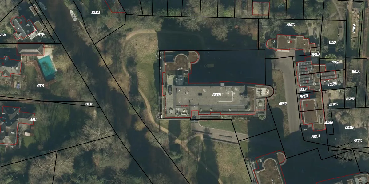 Het perceel waarop Markhoek 141 staat heeft een oppervlakte van 2389 m². Dit is een zeer groot perceel. De perceeloppervlakte wordt geregistreerd door het Kadaster. Gedetailleerde informatie over de maten van dit perceel kunt u vinden in het rapport Kadastrale kaart met maatvoering van Markhoek 141.