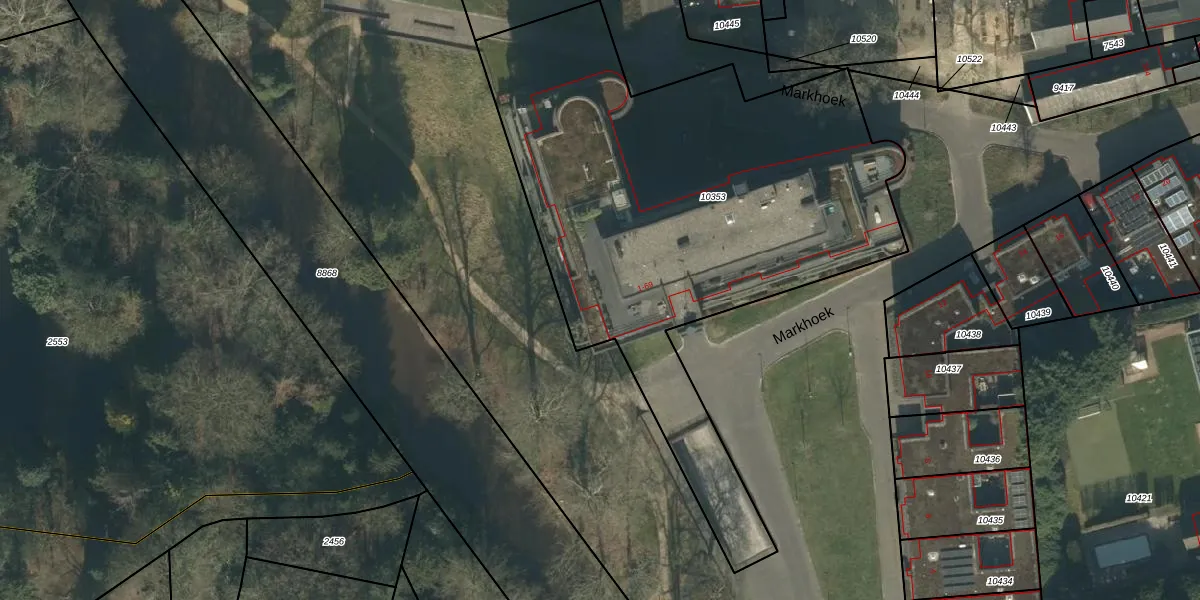 Het perceel waarop Markhoek 37 staat heeft een oppervlakte van 2842 m². Dit is een zeer groot perceel. De perceeloppervlakte wordt geregistreerd door het Kadaster. Gedetailleerde informatie over de maten van dit perceel kunt u vinden in het rapport Kadastrale kaart met maatvoering van Markhoek 37.