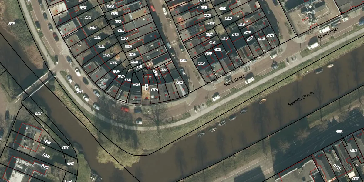 Marksingel 15 is gelegen op kadastraal perceel BDA00A5735. Deze kadastrale aanduiding is uniek en wordt gebruikt door het Kadaster om eigendomsrechten en andere zakelijke rechten vast te leggen. Het perceel maakt onderdeel uit van de kadastrale gemeente Breda.