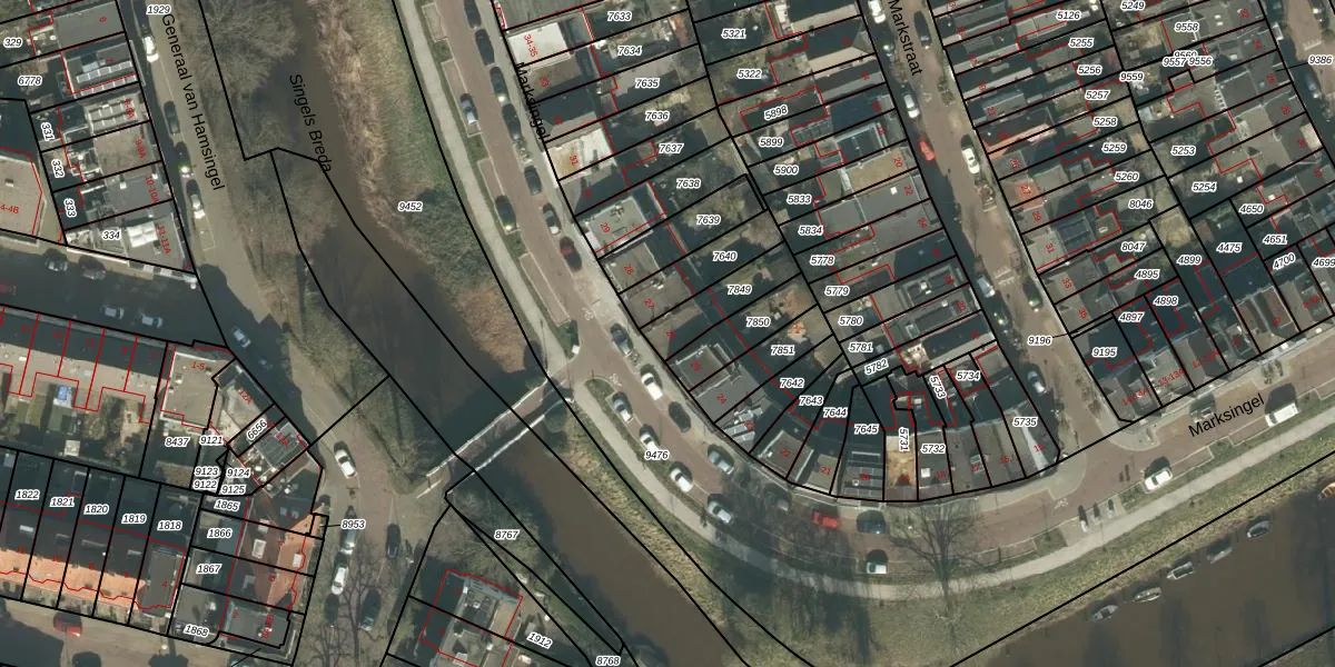 Marksingel 26 is gelegen op kadastraal perceel BDA00A7849. Deze kadastrale aanduiding is uniek en wordt gebruikt door het Kadaster om eigendomsrechten en andere zakelijke rechten vast te leggen. Het perceel maakt onderdeel uit van de kadastrale gemeente Breda.