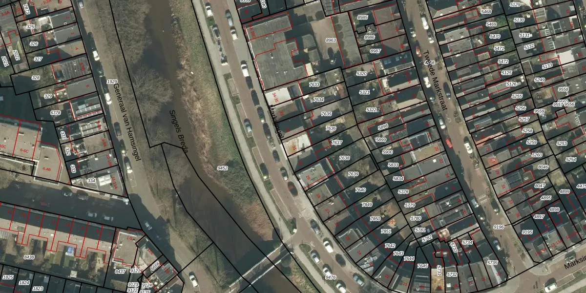 Marksingel 31 is gelegen op kadastraal perceel BDA00A7636. Deze kadastrale aanduiding is uniek en wordt gebruikt door het Kadaster om eigendomsrechten en andere zakelijke rechten vast te leggen. Het perceel maakt onderdeel uit van de kadastrale gemeente Breda.