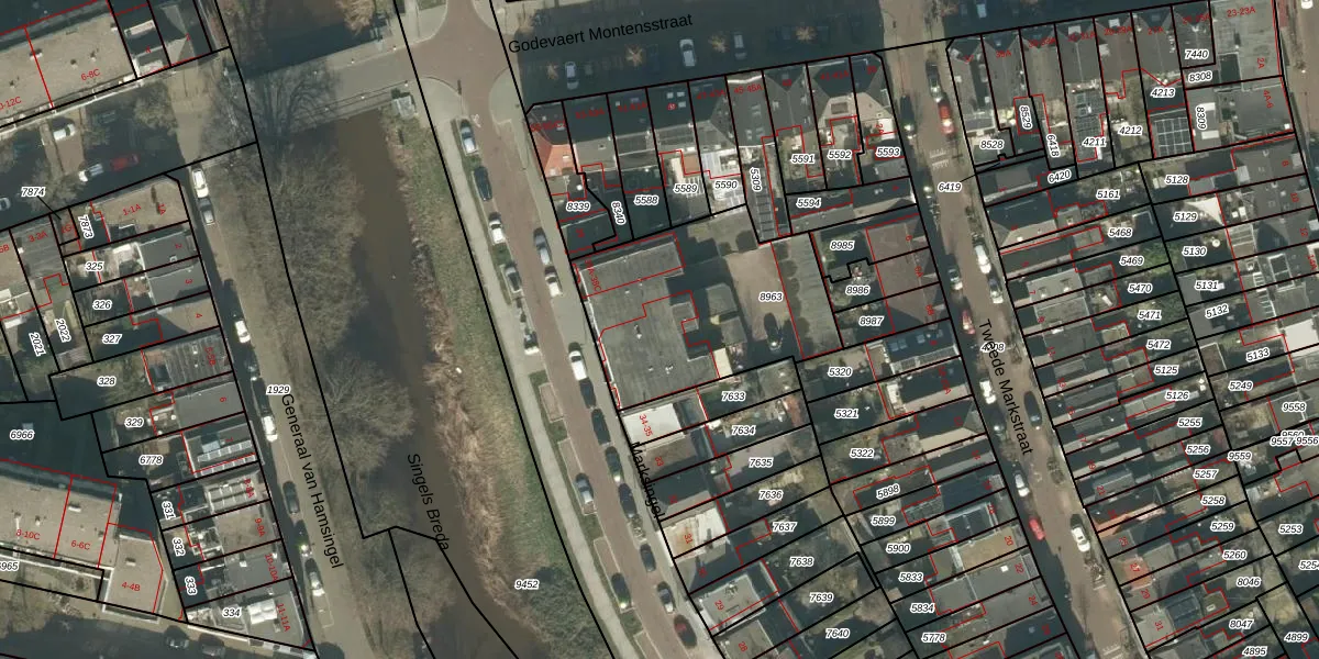 Marksingel 37-C is gelegen op kadastraal perceel BDA00A8963. Deze kadastrale aanduiding is uniek en wordt gebruikt door het Kadaster om eigendomsrechten en andere zakelijke rechten vast te leggen. Het perceel maakt onderdeel uit van de kadastrale gemeente Breda.