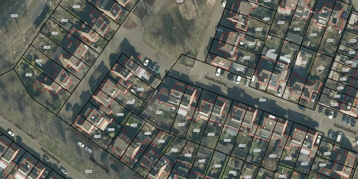 Het perceel waarop Markusberg 19 staat heeft een oppervlakte van 484 m². Dit is een groot perceel. De perceeloppervlakte wordt geregistreerd door het Kadaster. Gedetailleerde informatie over de maten van dit perceel kunt u vinden in het rapport Kadastrale kaart met maatvoering van Markusberg 19.