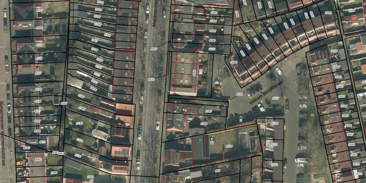 Het perceel waarop Mastbosstraat 45-B staat heeft een oppervlakte van 539 m². Dit is een groot perceel. De perceeloppervlakte wordt geregistreerd door het Kadaster. Gedetailleerde informatie over de maten van dit perceel kunt u vinden in het rapport Kadastrale kaart met maatvoering van Mastbosstraat 45-B.