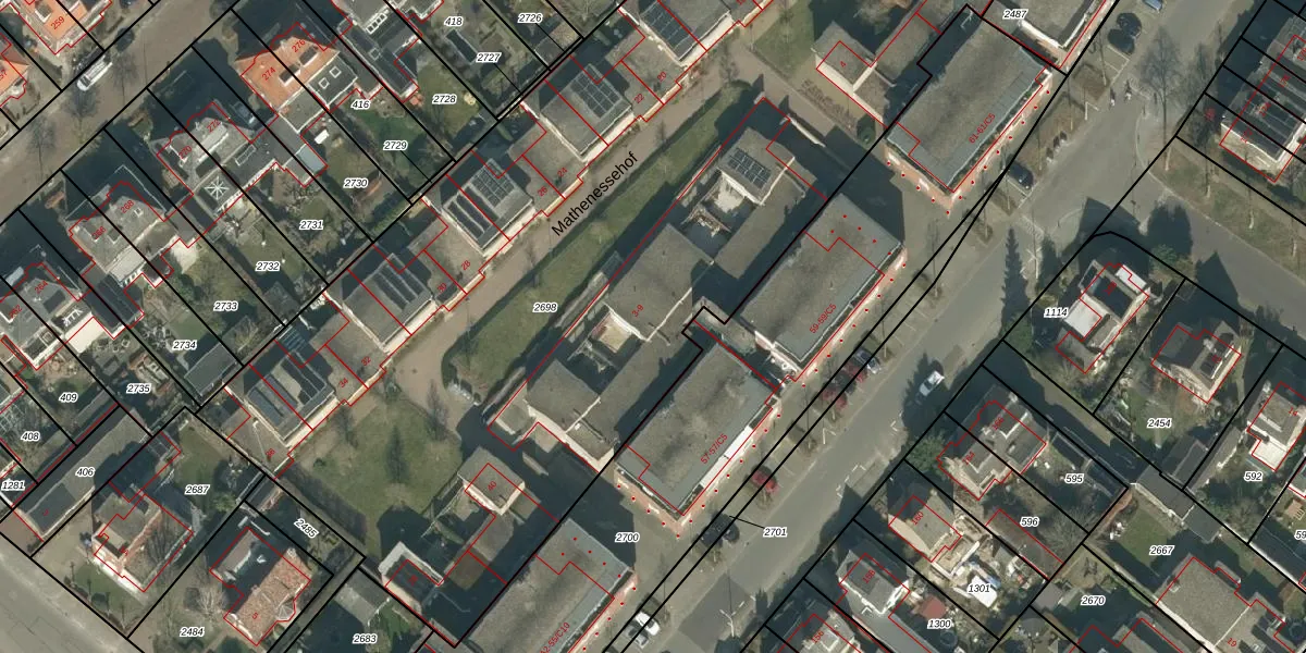 Het perceel waarop Mathenessehof 7 staat heeft een oppervlakte van 6687 m². Dit is een zeer groot perceel. De perceeloppervlakte wordt geregistreerd door het Kadaster. Gedetailleerde informatie over de maten van dit perceel kunt u vinden in het rapport Kadastrale kaart met maatvoering van Mathenessehof 7.
