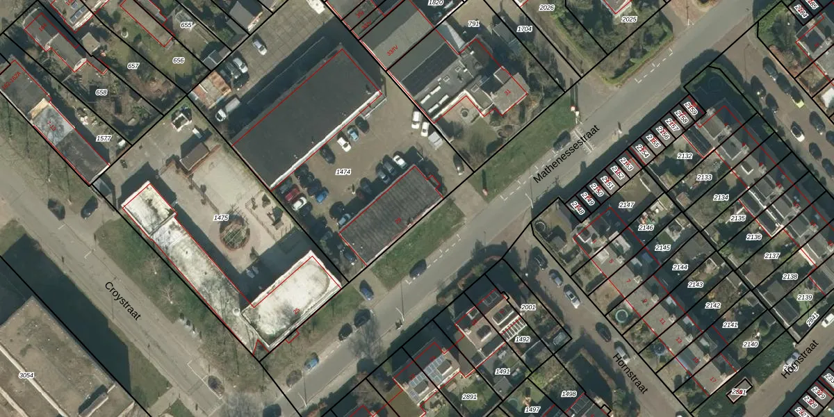 Het perceel waarop Mathenessestraat 29 staat heeft een oppervlakte van 2407 m². Dit is een zeer groot perceel. De perceeloppervlakte wordt geregistreerd door het Kadaster. Gedetailleerde informatie over de maten van dit perceel kunt u vinden in het rapport Kadastrale kaart met maatvoering van Mathenessestraat 29.
