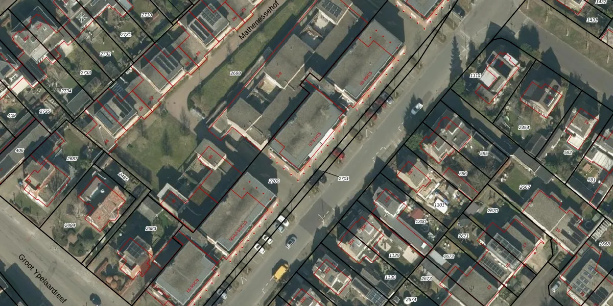 Mathenessestraat 57 is gelegen op kadastraal perceel GNK02M2700. Deze kadastrale aanduiding is uniek en wordt gebruikt door het Kadaster om eigendomsrechten en andere zakelijke rechten vast te leggen. Het perceel maakt onderdeel uit van de kadastrale gemeente Ginneken.