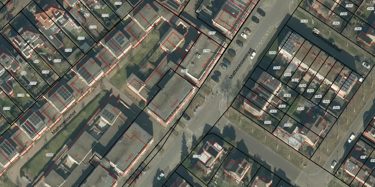 Het perceel waarop Mathenessestraat 61-A1 staat heeft een oppervlakte van 2886 m². Dit is een zeer groot perceel. De perceeloppervlakte wordt geregistreerd door het Kadaster. Gedetailleerde informatie over de maten van dit perceel kunt u vinden in het rapport Kadastrale kaart met maatvoering van Mathenessestraat 61-A1.