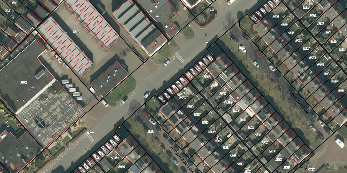 Gebruik de zoekbalk of klik op een perceel voor informatie over de adressen binnen dit perceel.