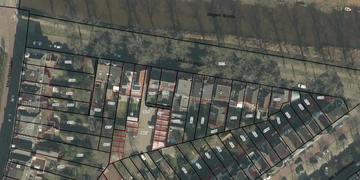 Mauritssingel 8-B is gelegen op kadastraal perceel BDA00B5151. Deze kadastrale aanduiding is uniek en wordt gebruikt door het Kadaster om eigendomsrechten en andere zakelijke rechten vast te leggen. Het perceel maakt onderdeel uit van de kadastrale gemeente Breda.