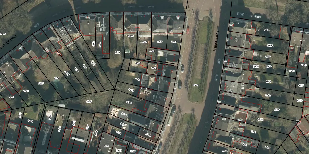 Het perceel waarop Mauritsstraat 13 staat heeft een oppervlakte van 324 m². Dit is een groot perceel. De perceeloppervlakte wordt geregistreerd door het Kadaster. Gedetailleerde informatie over de maten van dit perceel kunt u vinden in het rapport Kadastrale kaart met maatvoering van Mauritsstraat 13.