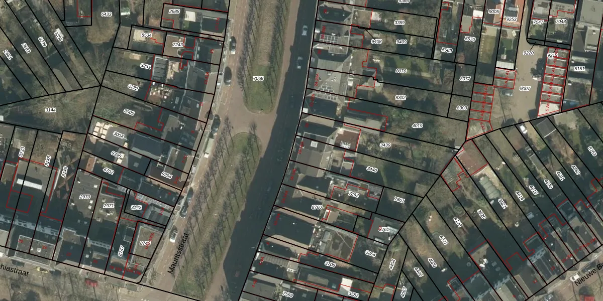 Het perceel waarop Mauritsstraat 18 staat heeft een oppervlakte van 407 m². Dit is een groot perceel. De perceeloppervlakte wordt geregistreerd door het Kadaster. Gedetailleerde informatie over de maten van dit perceel kunt u vinden in het rapport Kadastrale kaart met maatvoering van Mauritsstraat 18.