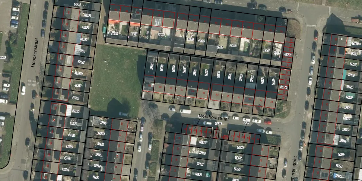 Het perceel waarop Meerhoutstraat 57 staat heeft een oppervlakte van 165 m². Dit is een middelgroot perceel. De perceeloppervlakte wordt geregistreerd door het Kadaster. Gedetailleerde informatie over de maten van dit perceel kunt u vinden in het rapport Kadastrale kaart met maatvoering van Meerhoutstraat 57.