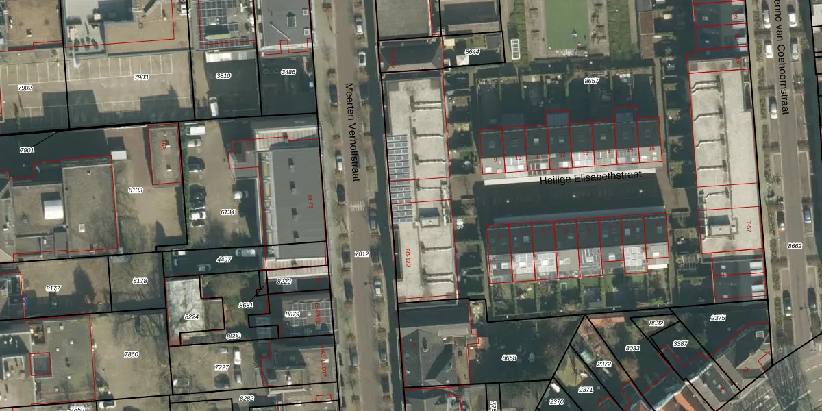 Het perceel waarop Meerten Verhoffstraat 10-B7 staat heeft een oppervlakte van 8208 m². Dit is een zeer groot perceel. De perceeloppervlakte wordt geregistreerd door het Kadaster. Gedetailleerde informatie over de maten van dit perceel kunt u vinden in het rapport Kadastrale kaart met maatvoering van Meerten Verhoffstraat 10-B7.