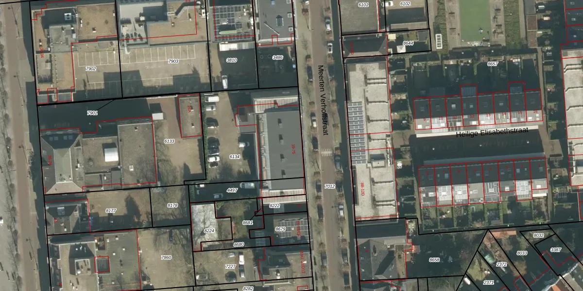 Het perceel waarop Meerten Verhoffstraat 47 staat heeft een oppervlakte van 1050 m². Dit is een zeer groot perceel. De perceeloppervlakte wordt geregistreerd door het Kadaster. Gedetailleerde informatie over de maten van dit perceel kunt u vinden in het rapport Kadastrale kaart met maatvoering van Meerten Verhoffstraat 47.