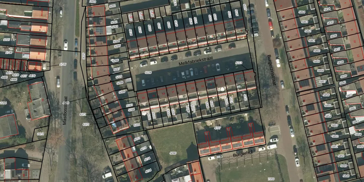 Het perceel waarop Melkfabriekstraat 15 staat heeft een oppervlakte van 119 m². Dit is een middelgroot perceel. De perceeloppervlakte wordt geregistreerd door het Kadaster. Gedetailleerde informatie over de maten van dit perceel kunt u vinden in het rapport Kadastrale kaart met maatvoering van Melkfabriekstraat 15.