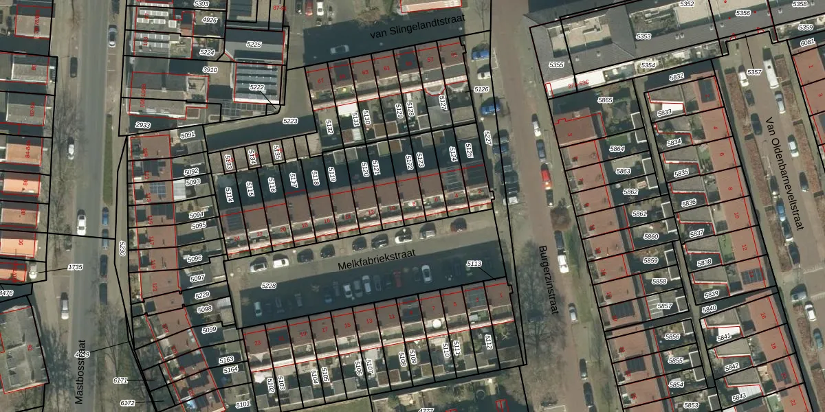 Het perceel waarop Melkfabriekstraat 8 staat heeft een oppervlakte van 115 m². Dit is een middelgroot perceel. De perceeloppervlakte wordt geregistreerd door het Kadaster. Gedetailleerde informatie over de maten van dit perceel kunt u vinden in het rapport Kadastrale kaart met maatvoering van Melkfabriekstraat 8.