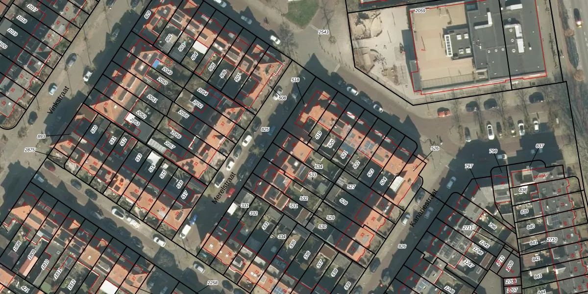 Gebruik de zoekbalk of klik op een perceel voor informatie over de adressen binnen dit perceel.