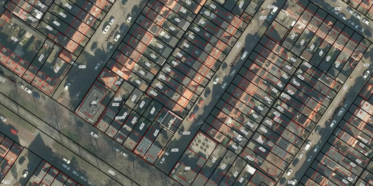 Gebruik de zoekbalk of klik op een perceel voor informatie over de adressen binnen dit perceel.