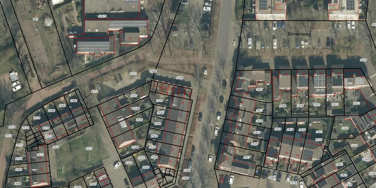 Het perceel waarop Merodelaan 31 staat heeft een oppervlakte van 107 m². Dit is een middelgroot perceel. De perceeloppervlakte wordt geregistreerd door het Kadaster. Gedetailleerde informatie over de maten van dit perceel kunt u vinden in het rapport Kadastrale kaart met maatvoering van Merodelaan 31.