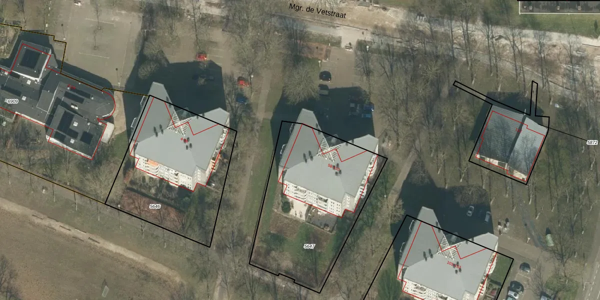 Het perceel waarop Mgr. de Vetstraat 62 staat heeft een oppervlakte van 1562 m². Dit is een zeer groot perceel. De perceeloppervlakte wordt geregistreerd door het Kadaster. Gedetailleerde informatie over de maten van dit perceel kunt u vinden in het rapport Kadastrale kaart met maatvoering van Mgr. de Vetstraat 62.