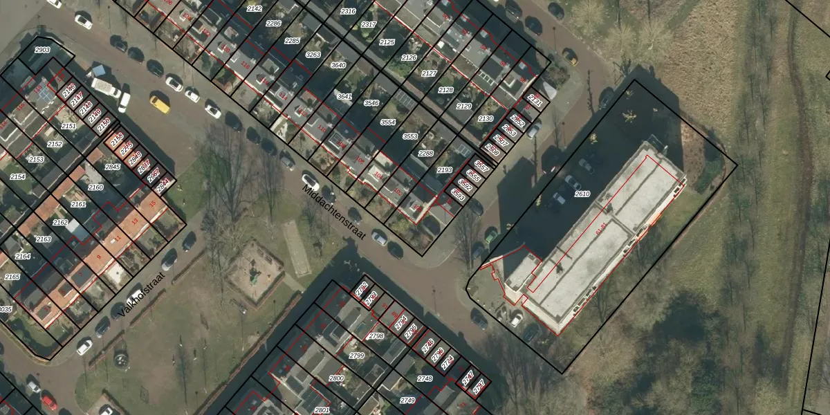 Het perceel waarop Middachtenstraat 100 staat heeft een oppervlakte van 266 m². Dit is een middelgroot perceel. De perceeloppervlakte wordt geregistreerd door het Kadaster. Gedetailleerde informatie over de maten van dit perceel kunt u vinden in het rapport Kadastrale kaart met maatvoering van Middachtenstraat 100.