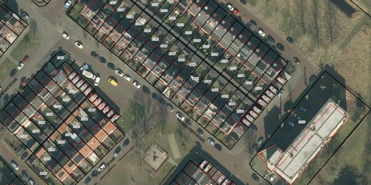 Gebruik de zoekbalk of klik op een perceel voor informatie over de adressen binnen dit perceel.