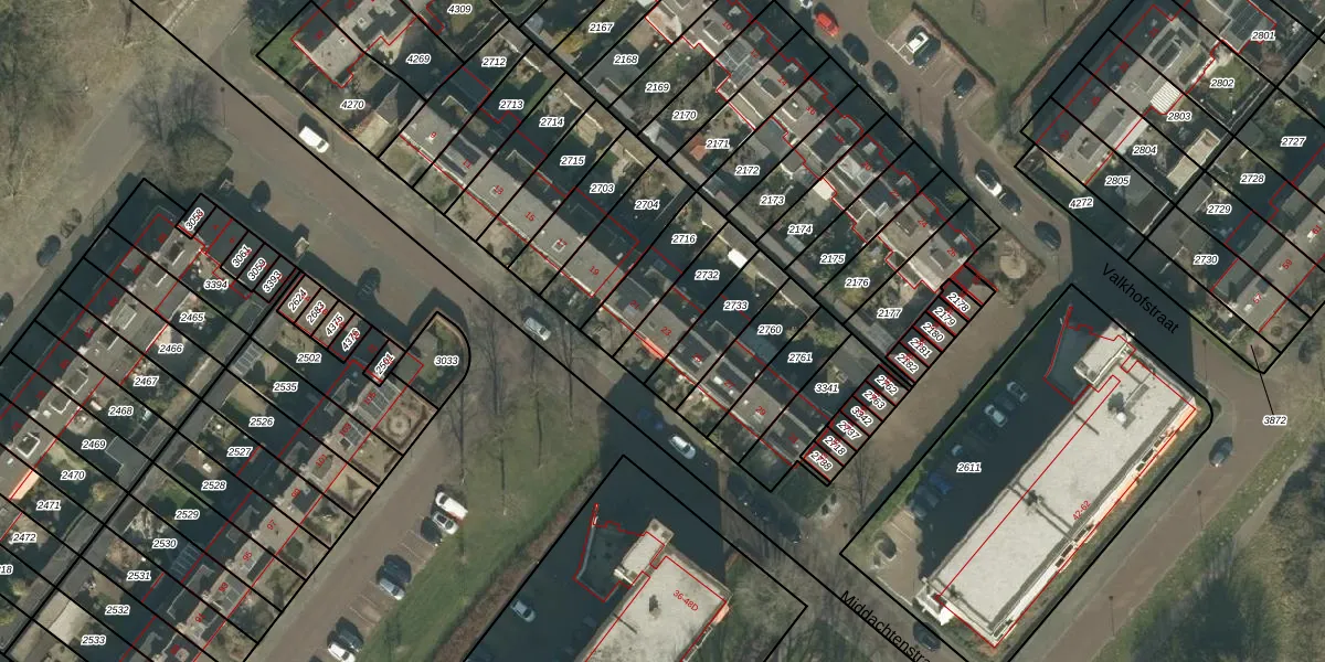 Middachtenstraat 23 is gelegen op kadastraal perceel GNK02N2732. Deze kadastrale aanduiding is uniek en wordt gebruikt door het Kadaster om eigendomsrechten en andere zakelijke rechten vast te leggen. Het perceel maakt onderdeel uit van de kadastrale gemeente Ginneken.