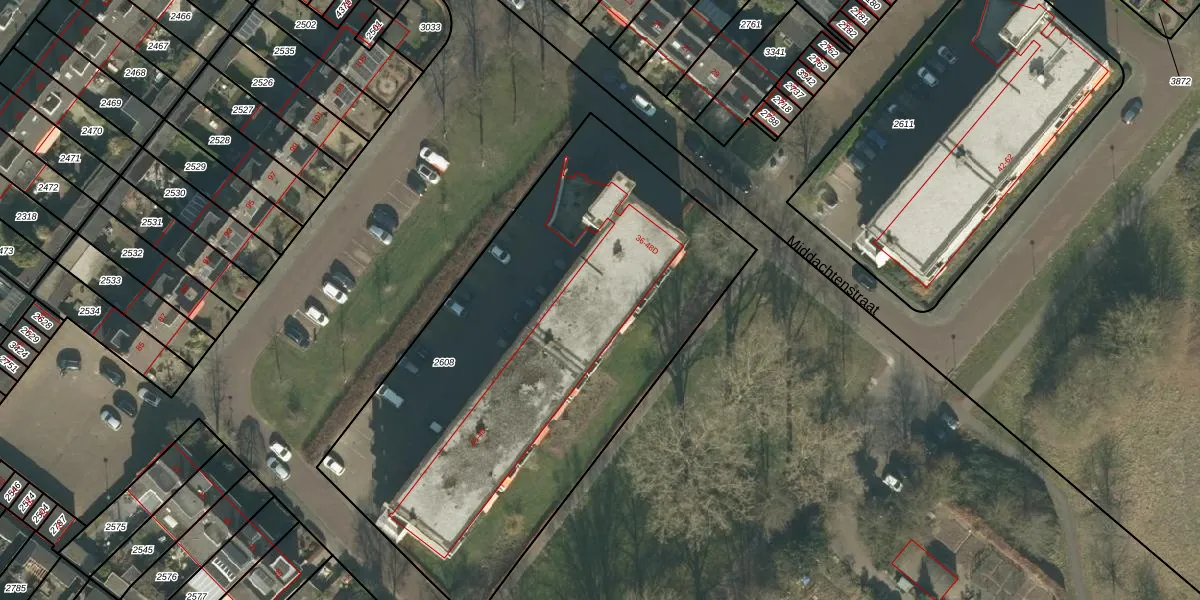 Middachtenstraat 38-B is gelegen op kadastraal perceel GNK02N2608. Deze kadastrale aanduiding is uniek en wordt gebruikt door het Kadaster om eigendomsrechten en andere zakelijke rechten vast te leggen. Het perceel maakt onderdeel uit van de kadastrale gemeente Ginneken.