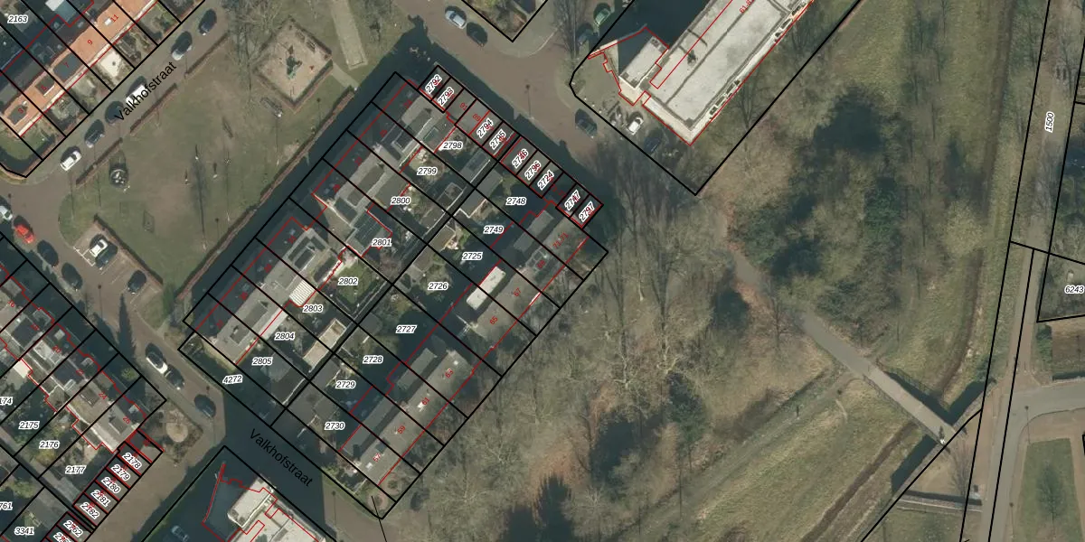 Gebruik de zoekbalk of klik op een perceel voor informatie over de adressen binnen dit perceel.