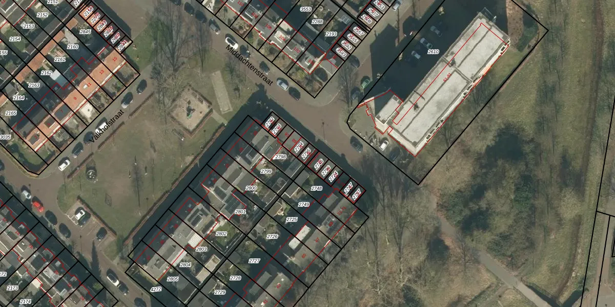 Gebruik de zoekbalk of klik op een perceel voor informatie over de adressen binnen dit perceel.