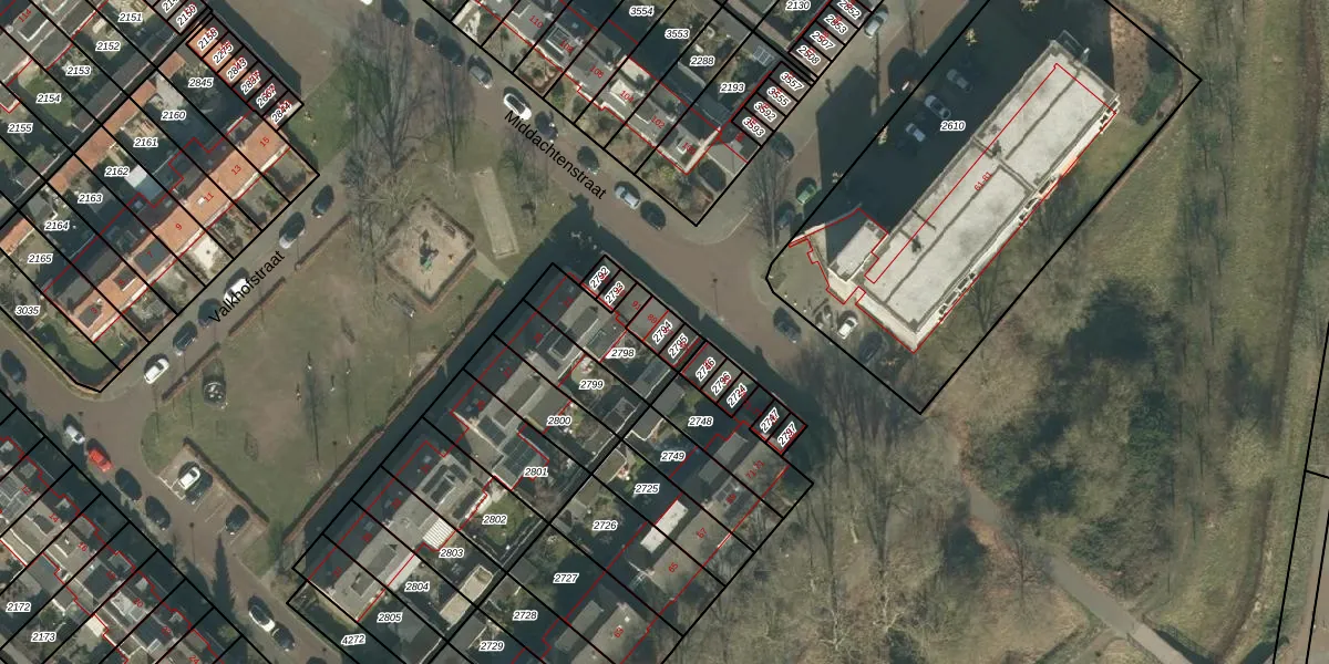 Het perceel waarop Middachtenstraat 87 staat heeft een oppervlakte van 39 m². Dit is een klein perceel. De perceeloppervlakte wordt geregistreerd door het Kadaster. Gedetailleerde informatie over de maten van dit perceel kunt u vinden in het rapport Kadastrale kaart met maatvoering van Middachtenstraat 87.