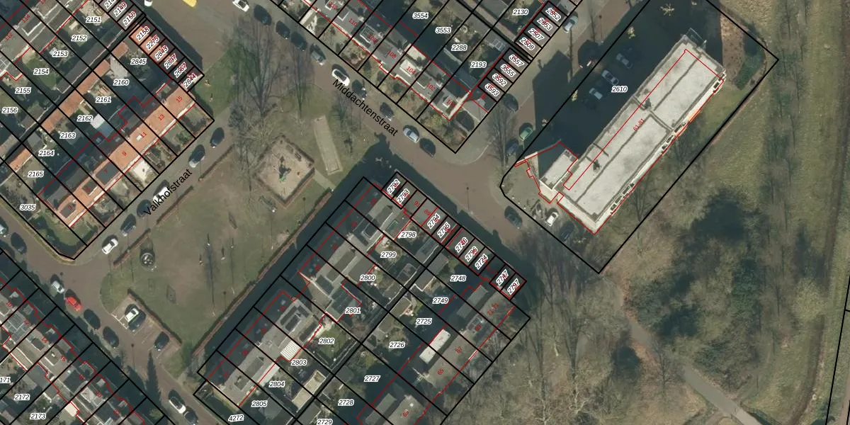 Het perceel waarop Middachtenstraat 89 staat heeft een oppervlakte van 39 m². Dit is een klein perceel. De perceeloppervlakte wordt geregistreerd door het Kadaster. Gedetailleerde informatie over de maten van dit perceel kunt u vinden in het rapport Kadastrale kaart met maatvoering van Middachtenstraat 89.