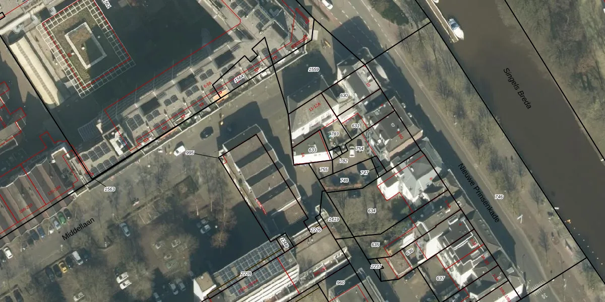 Het perceel waarop Middellaan 1-A staat heeft een oppervlakte van 88 m². Dit is een klein perceel. De perceeloppervlakte wordt geregistreerd door het Kadaster. Gedetailleerde informatie over de maten van dit perceel kunt u vinden in het rapport Kadastrale kaart met maatvoering van Middellaan 1-A.