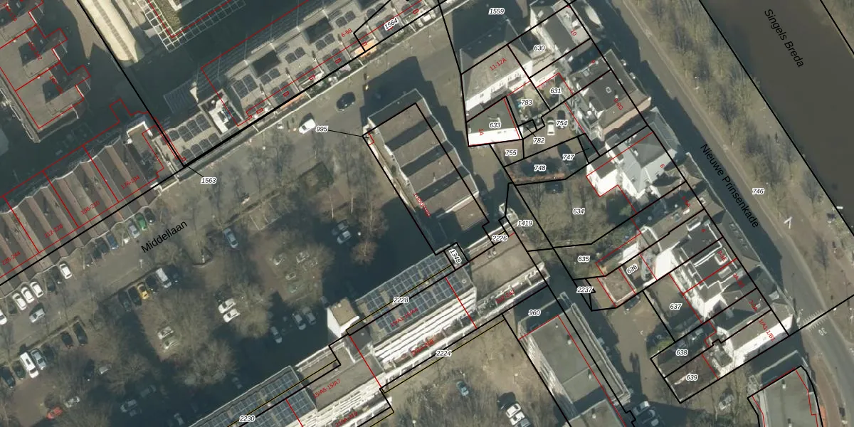 Middellaan 11 is gelegen op kadastraal perceel BDA00F995. Deze kadastrale aanduiding is uniek en wordt gebruikt door het Kadaster om eigendomsrechten en andere zakelijke rechten vast te leggen. Het perceel maakt onderdeel uit van de kadastrale gemeente Breda.