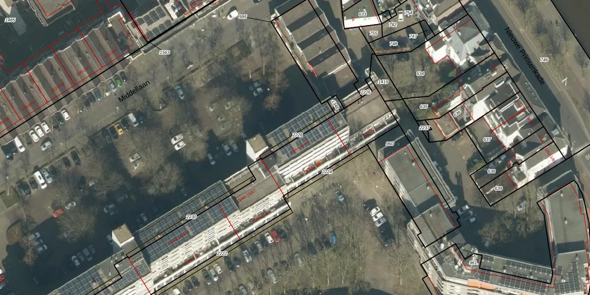 Het perceel waarop Middellaan 15-A3 staat heeft een oppervlakte van 2560 m². Dit is een zeer groot perceel. De perceeloppervlakte wordt geregistreerd door het Kadaster. Gedetailleerde informatie over de maten van dit perceel kunt u vinden in het rapport Kadastrale kaart met maatvoering van Middellaan 15-A3.