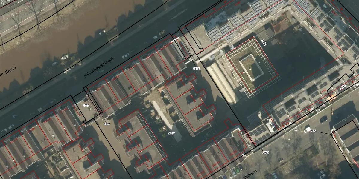 Het perceel waarop Middellaan 168 staat heeft een oppervlakte van 5154 m². Dit is een zeer groot perceel. De perceeloppervlakte wordt geregistreerd door het Kadaster. Gedetailleerde informatie over de maten van dit perceel kunt u vinden in het rapport Kadastrale kaart met maatvoering van Middellaan 168.