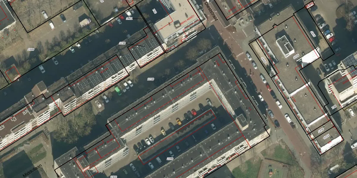 Middellaan 19 is gelegen op kadastraal perceel BDA00F2299. Deze kadastrale aanduiding is uniek en wordt gebruikt door het Kadaster om eigendomsrechten en andere zakelijke rechten vast te leggen. Het perceel maakt onderdeel uit van de kadastrale gemeente Breda.