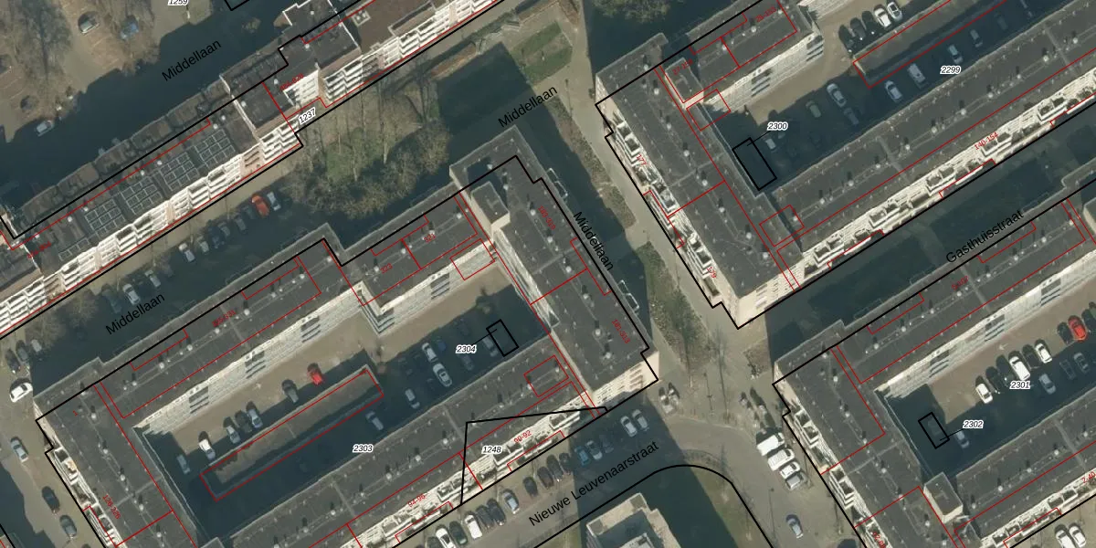 Middellaan 211 is gelegen op kadastraal perceel BDA00F2303. Deze kadastrale aanduiding is uniek en wordt gebruikt door het Kadaster om eigendomsrechten en andere zakelijke rechten vast te leggen. Het perceel maakt onderdeel uit van de kadastrale gemeente Breda.
