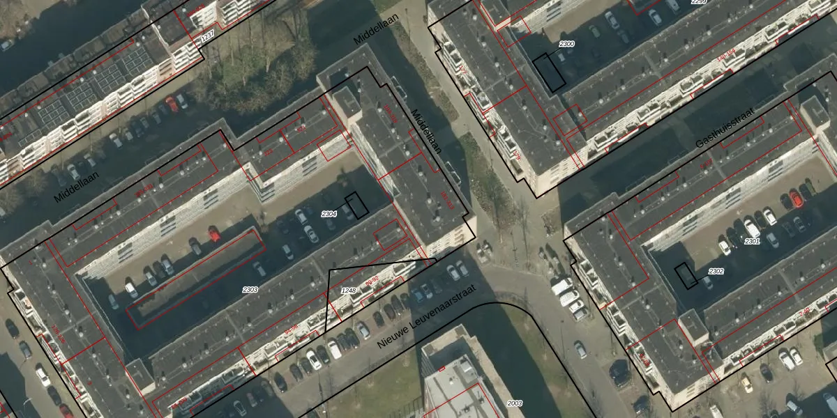 Middellaan 249 is gelegen op kadastraal perceel BDA00F2303. Deze kadastrale aanduiding is uniek en wordt gebruikt door het Kadaster om eigendomsrechten en andere zakelijke rechten vast te leggen. Het perceel maakt onderdeel uit van de kadastrale gemeente Breda.