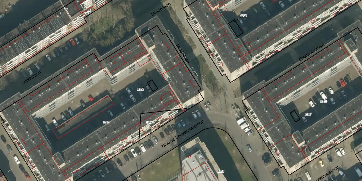Middellaan 251 is gelegen op kadastraal perceel BDA00F2303. Deze kadastrale aanduiding is uniek en wordt gebruikt door het Kadaster om eigendomsrechten en andere zakelijke rechten vast te leggen. Het perceel maakt onderdeel uit van de kadastrale gemeente Breda.